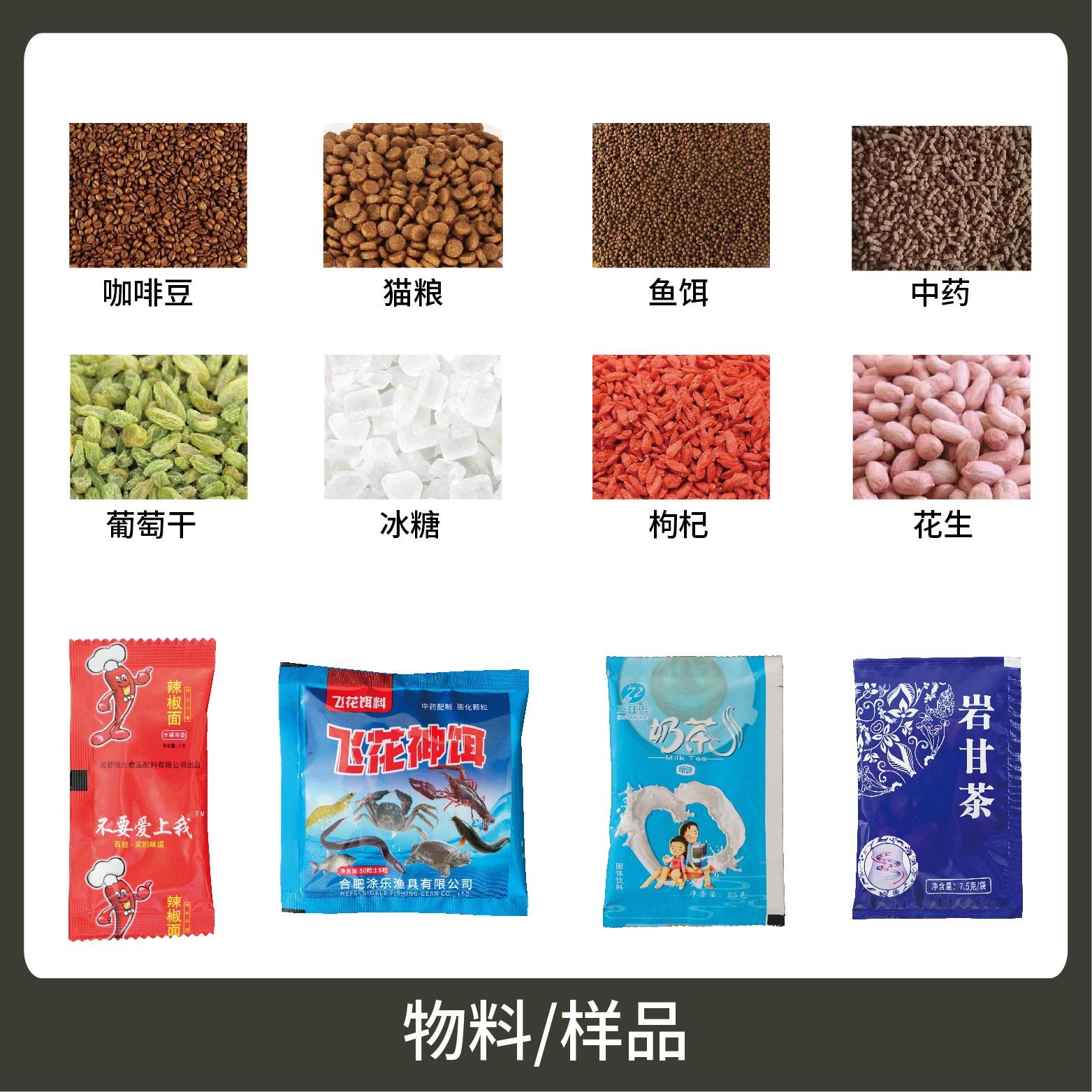 1、適用于各行業(yè)中堅(jiān)果、炒貨、干果、餌料、中藥等顆粒狀物品的計(jì)量包裝。