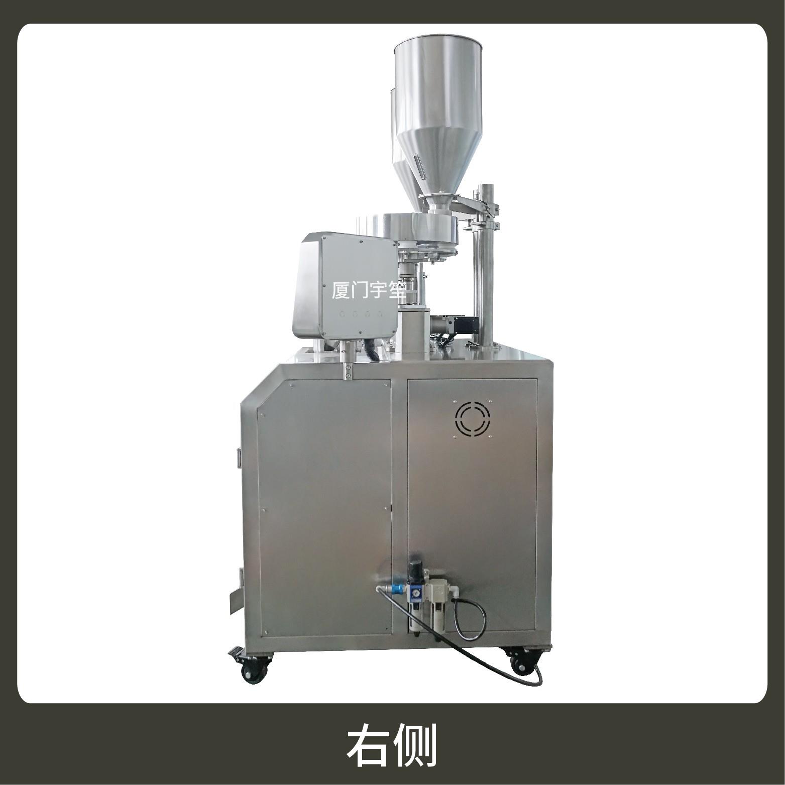 1、成品雙出,速度快,包裝流程全自動,無需人工操作??筛鶕?jù)充填物料的性質(zhì)選配不同的下料結(jié)構(gòu)。